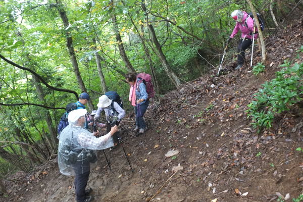 大月駅から市街を抜け、畑倉登山口から入山し、途中、悪路により撤退