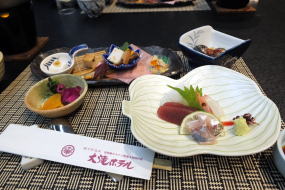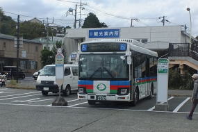 真鶴駅13:01 JR → 13:07 湯河原駅 → WEST → (バス) → 14:40 不動滝BS → 大滝ホテル(泊)