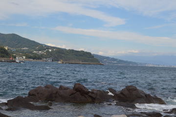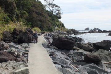 09:45 中川一政美術館前 → 10:05 番場浦海岸 → 三ツ石 → 10:40 ケープ真鶴 → 11:20 真鶴海岸 → 11:40 海女食堂(ランチ) 12:20 → 12:45 真鶴駅